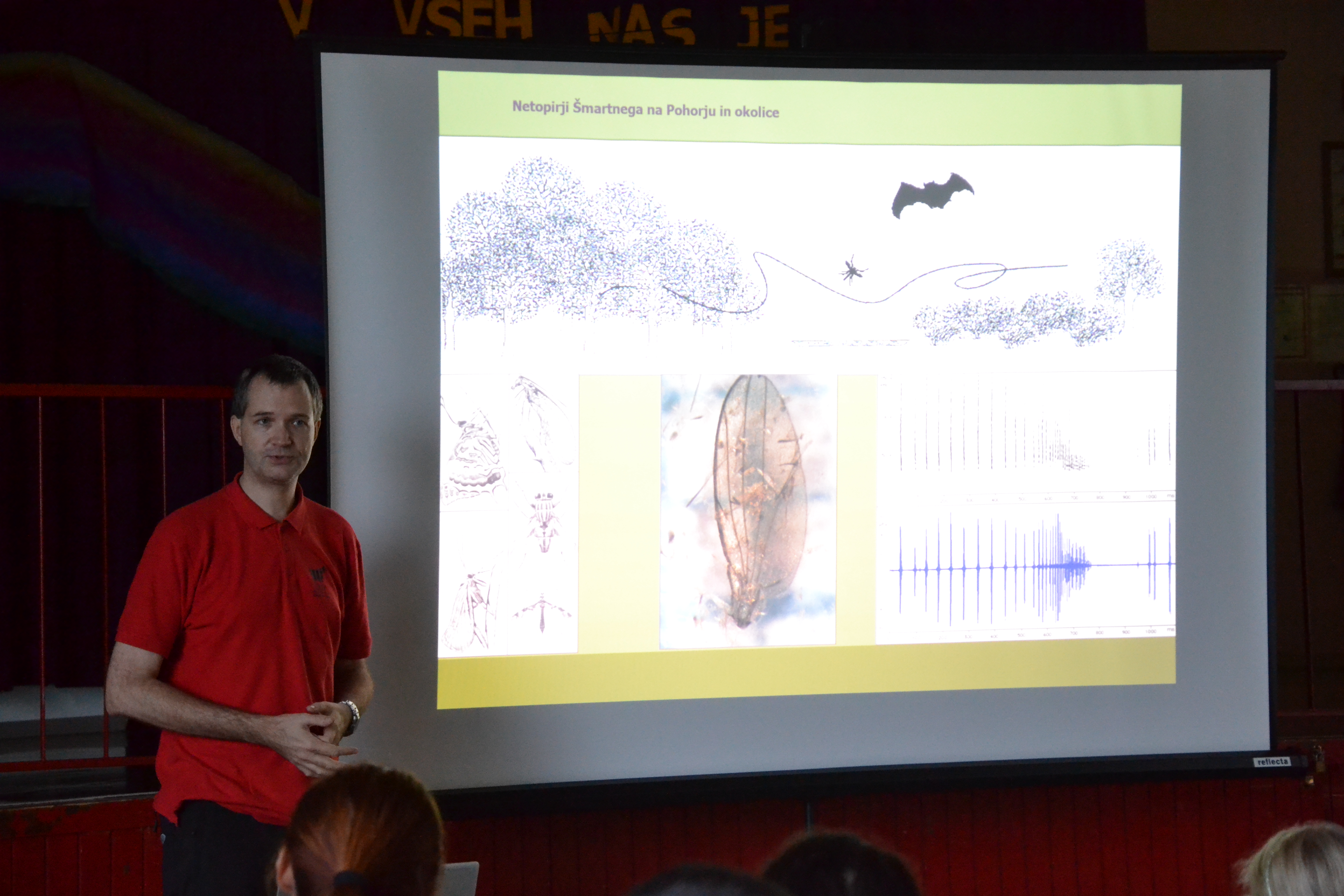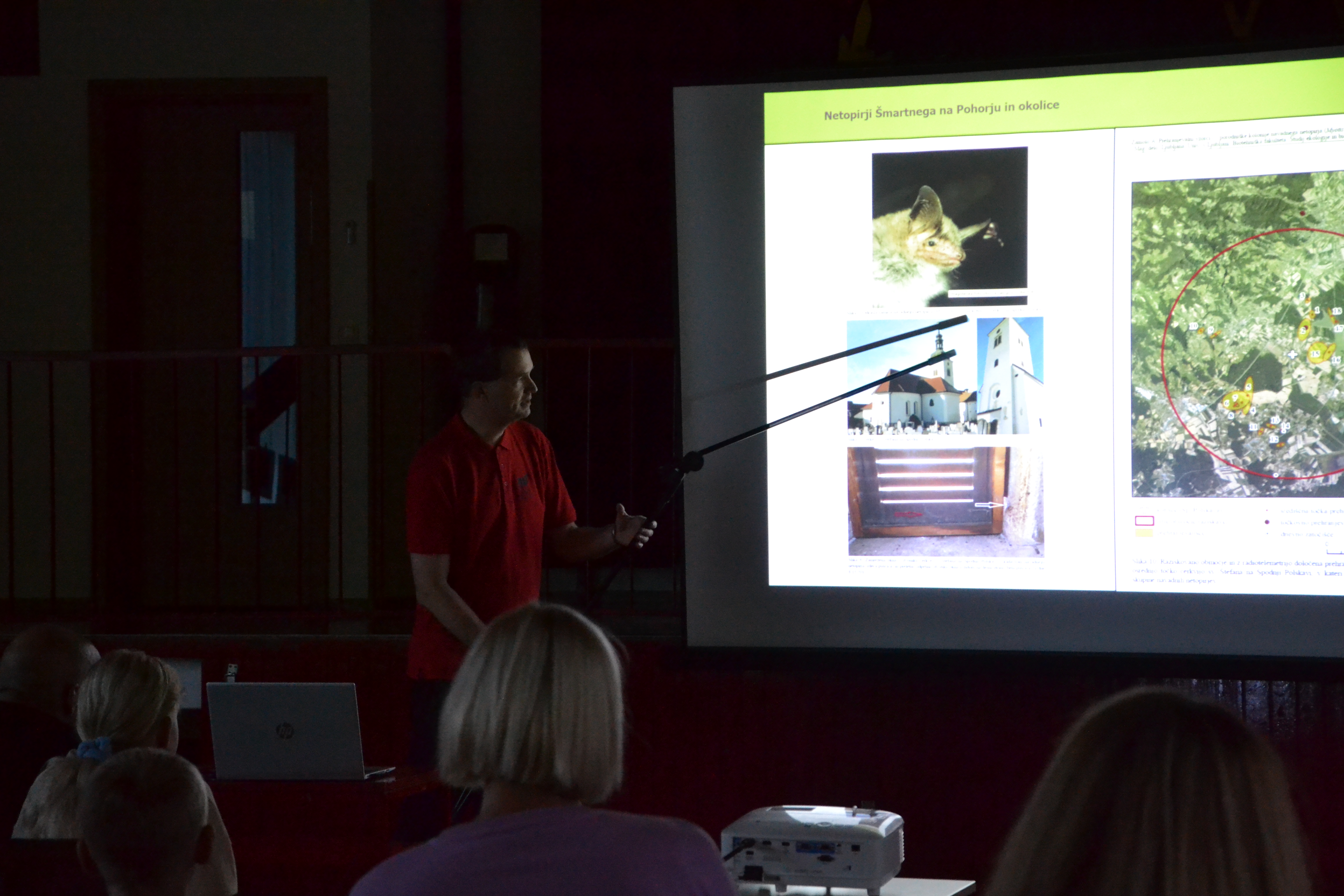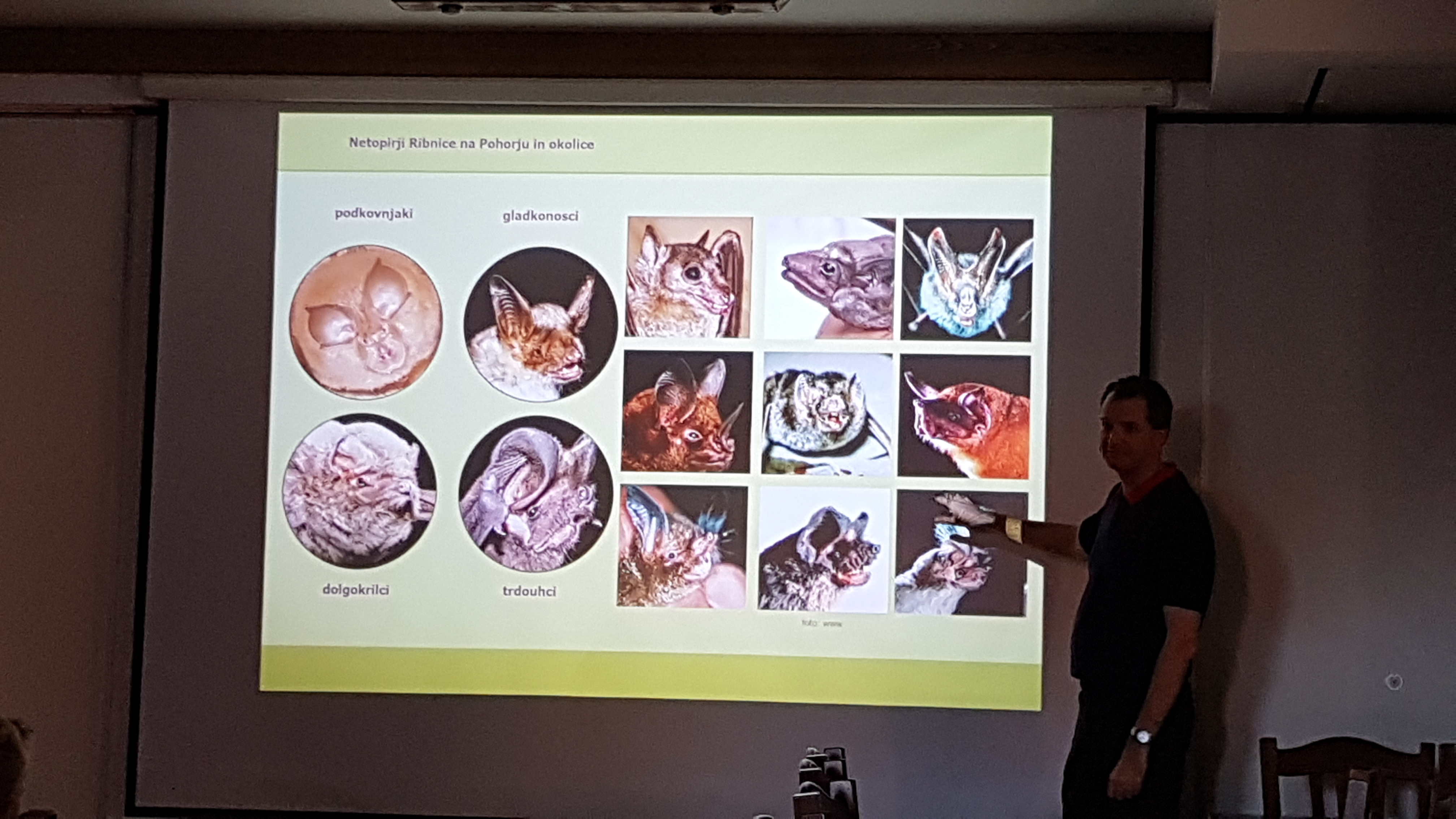 Kot predavatelja smo uspeli pridobiti enega naših največjih poznavalcev netopirjev, Primoža Presetnika, ki je pripravil odlična predavanja s katerimi je pritegnil vse udeležence. Podrobneje je predstavil netopirski vrsti, ki so jima projektne aktivnosti primarno namenjene: vejicatega netopirja (Myotis emarginatus) in malega podkovnjaka (Rhinolophus hipposideros), seveda pa so bile predstavljene tudi vse ostale vrste netopirjev Pohorja.
