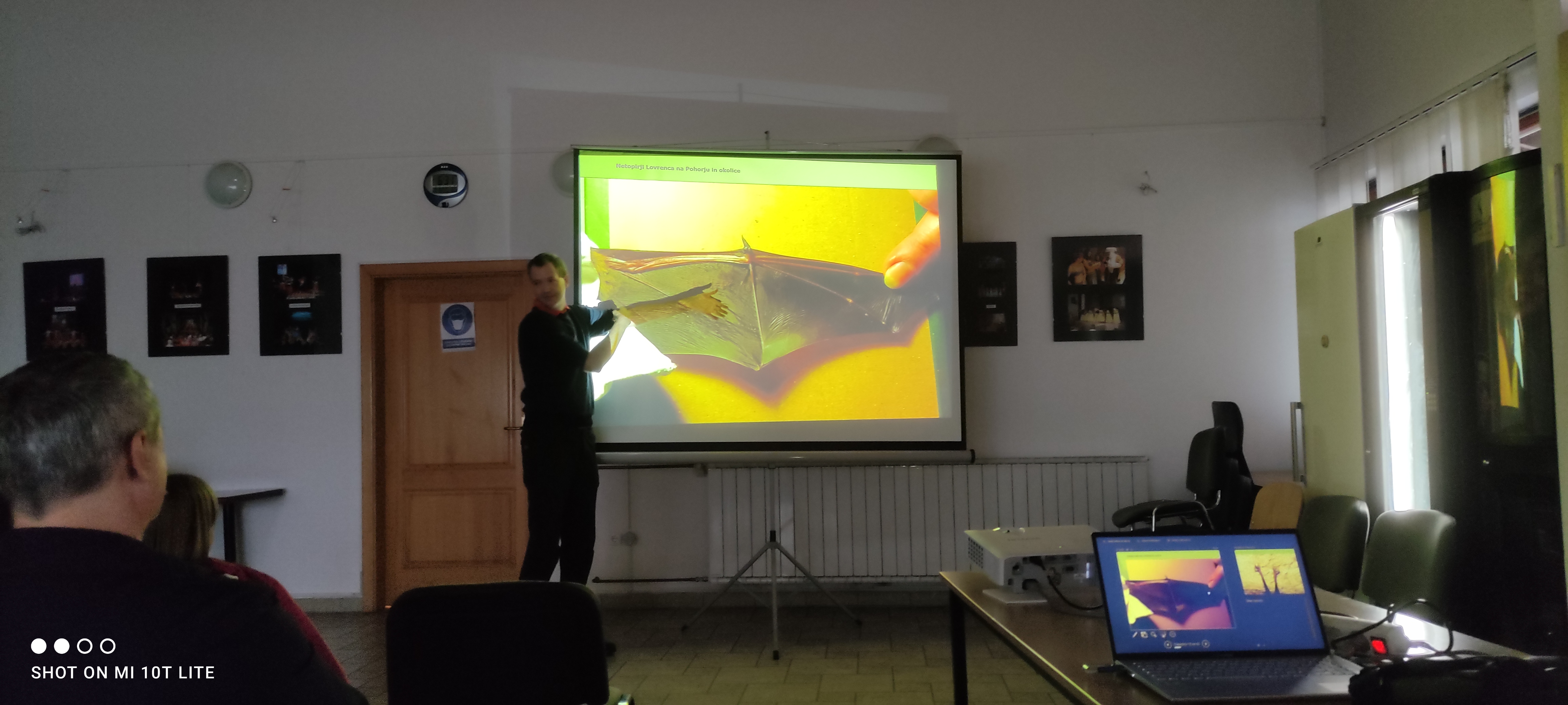 Predavanja je spremljala fotografska razstava netopirjev, ki sva jo za projektne dogodke pripravili Katja Berden (ZRSVN, projekt POHORKA) in Jasmina Kotnik (SDPVN).